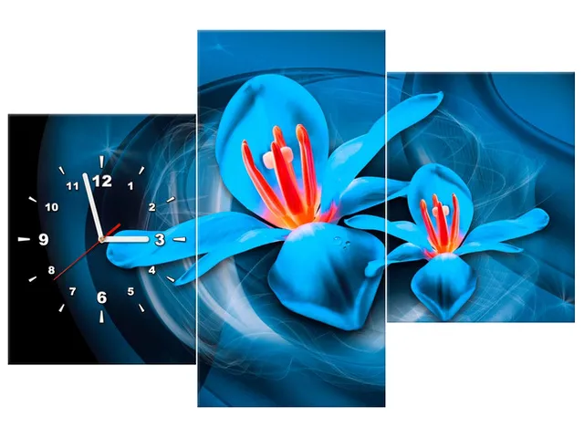 Úvod » Obrazy » Obrazy s hodinami » Obraz s hodinami Modré kozmické kvety - Jakub Banas