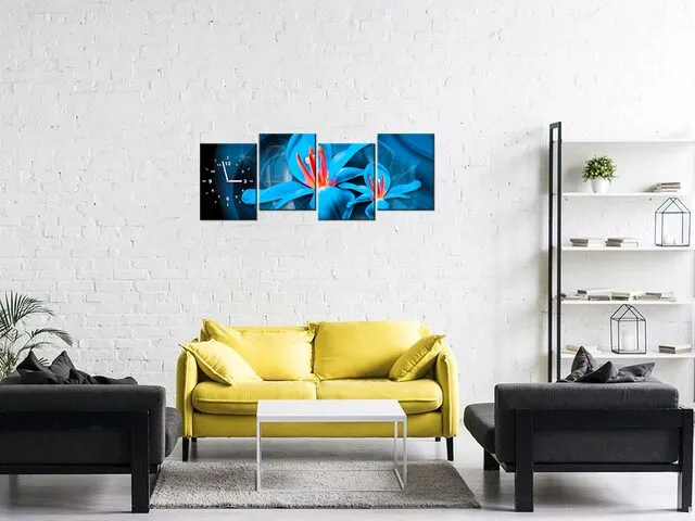 ZP3575A_3K Obraz s hodinami Modré kozmické kvety - Jakub Banas |