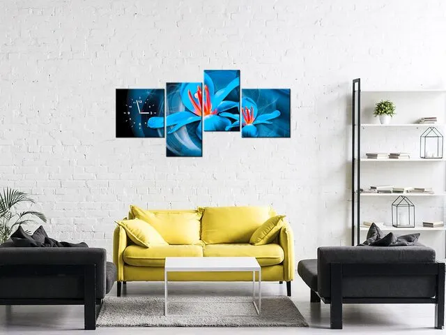 Úvod » Obrazy » Obrazy s hodinami » Obraz s hodinami Modré kozmické kvety - Jakub Banas
