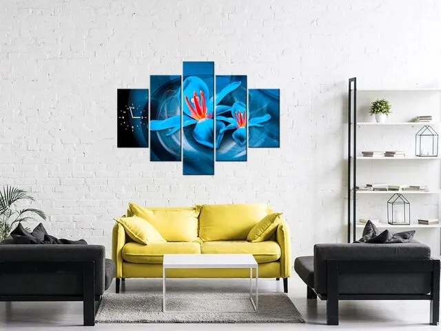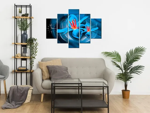 Úvod » Obrazy » Obrazy s hodinami » Obraz s hodinami Modré kozmické kvety - Jakub Banas