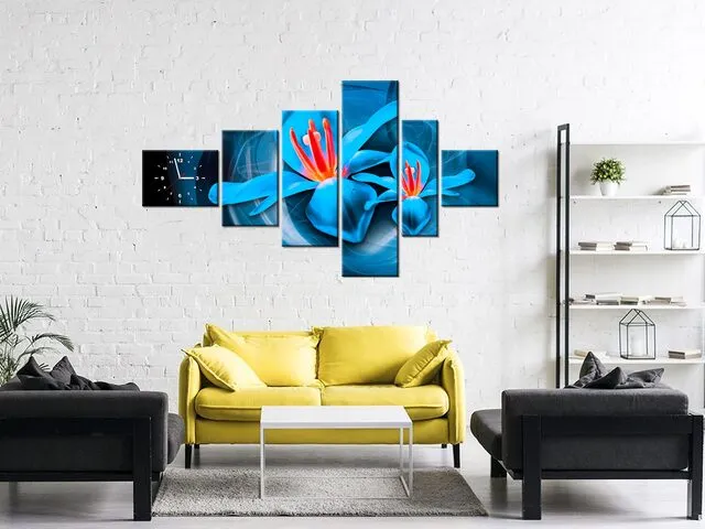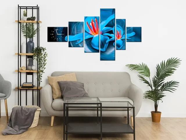 Úvod » Obrazy » Obrazy s hodinami » Obraz s hodinami Modré kozmické kvety - Jakub Banas