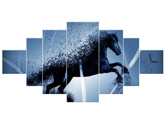 Úvod » Obrazy » Obrazy s hodinami » Obraz s hodinami Modrý kôň fragmentácia - Jakub Banas