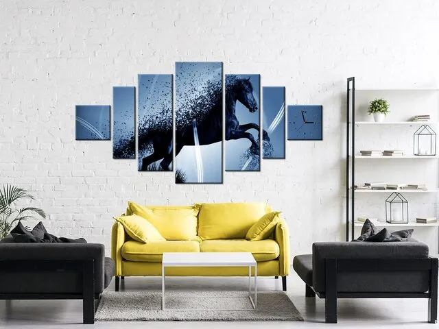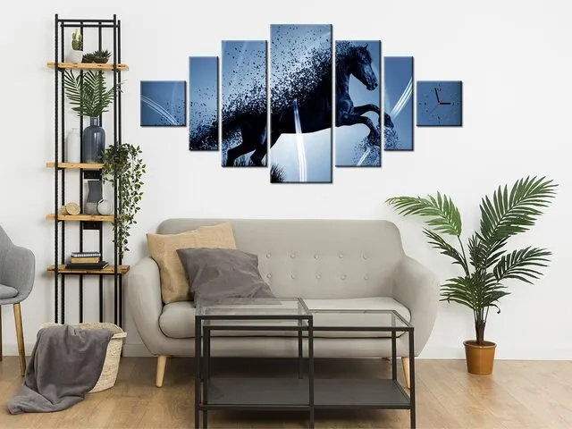 ZP3574A_6E Obraz s hodinami Modrý kôň fragmentácia - Jakub Banas |