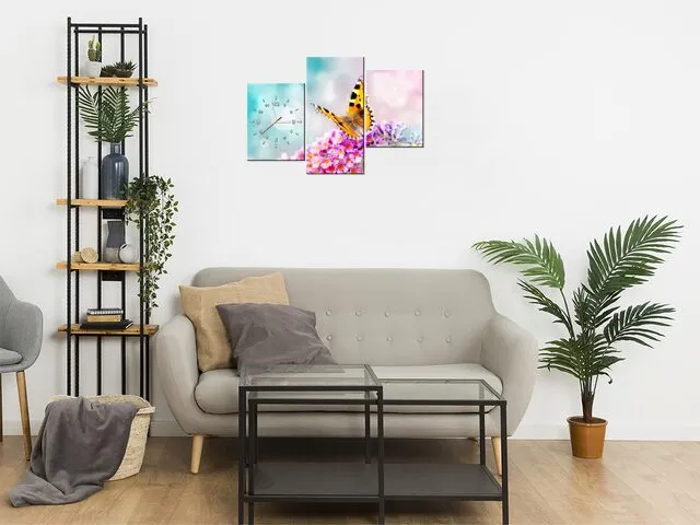 Barion Pixel Obraz s hodinami Motýľ v kvetoch