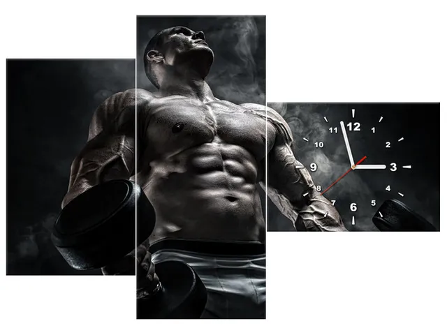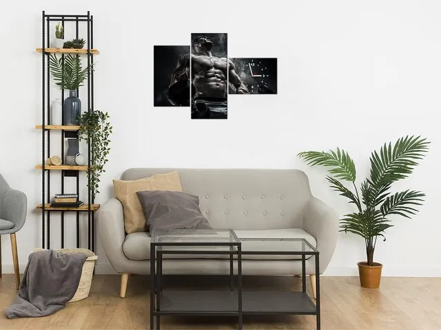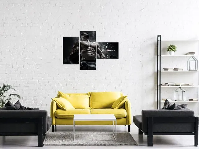 Úvod » Obrazy » Obrazy s hodinami » Obraz s hodinami Muž v posilňovni v kovovej farbe