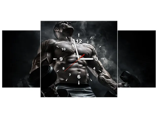 Úvod » Obrazy » Obrazy s hodinami » Obraz s hodinami Muž v posilňovni v kovovej farbe