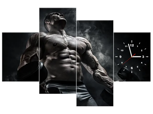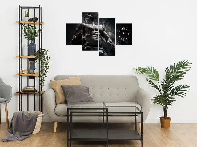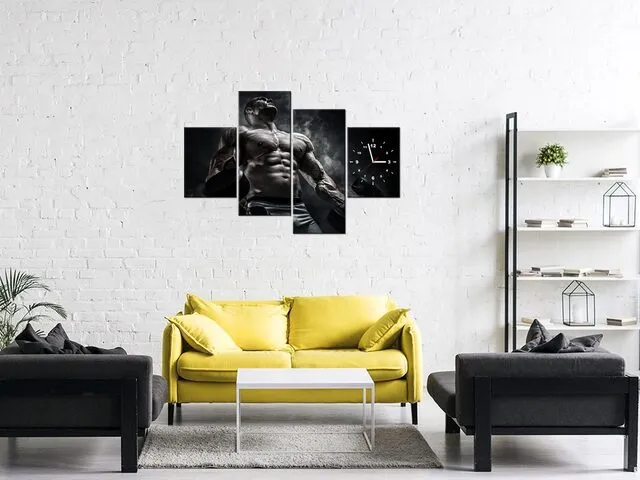 Úvod » Obrazy » Obrazy s hodinami » Obraz s hodinami Muž v posilňovni v kovovej farbe