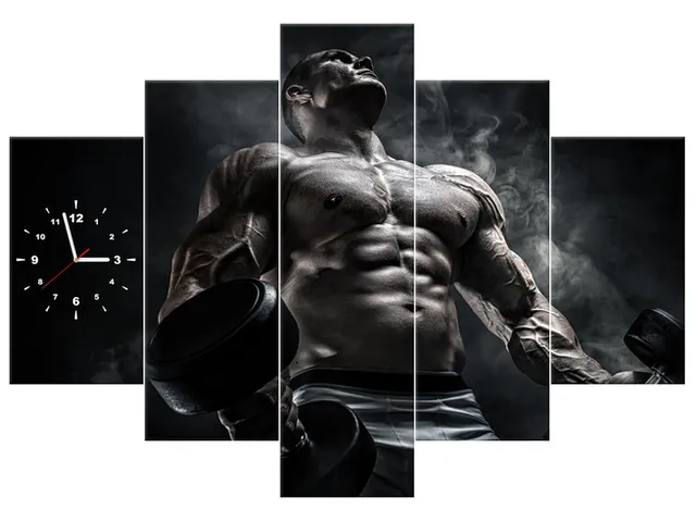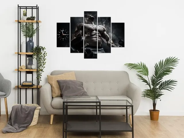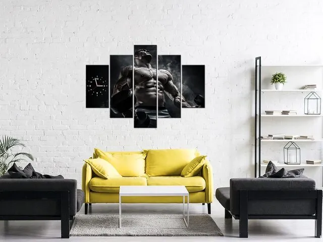 Úvod » Obrazy » Obrazy s hodinami » Obraz s hodinami Muž v posilňovni v kovovej farbe