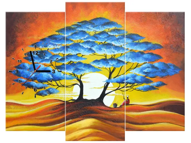 Úvod » Obrazy » Obrazy s hodinami » Obraz s hodinami Oddych pod modrým stromom