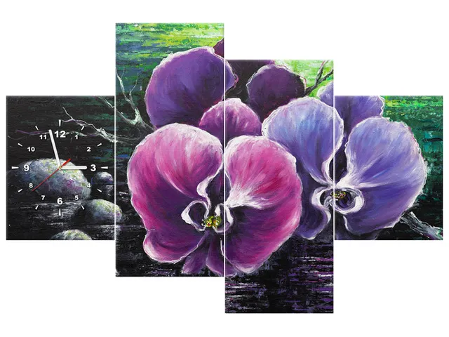 ZP4774A_3AX Obraz s hodinami Orchidea nad rybníkom |