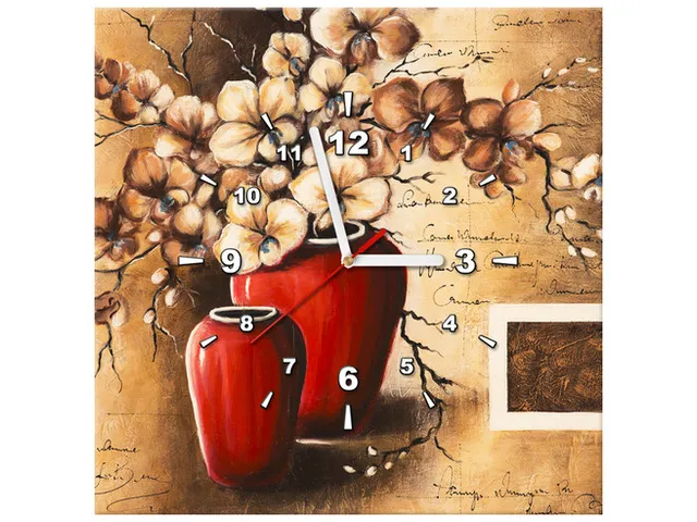 Úvod » Obrazy » Obrazy s hodinami » Obraz s hodinami Orchidey v červenej váze