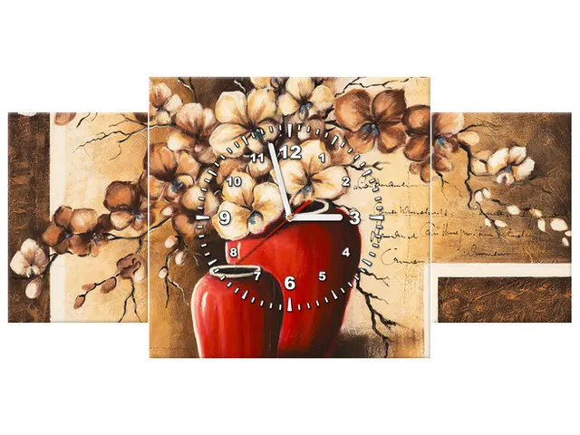 Obraz s hodinami Orchidey v červenej váze