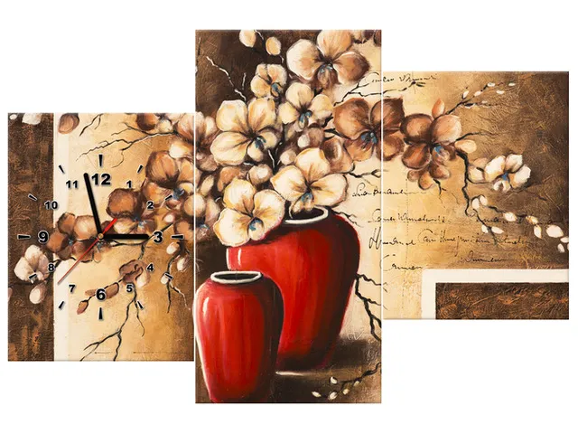 Úvod » Obrazy » Obrazy s hodinami » Obraz s hodinami Orchidey v červenej váze