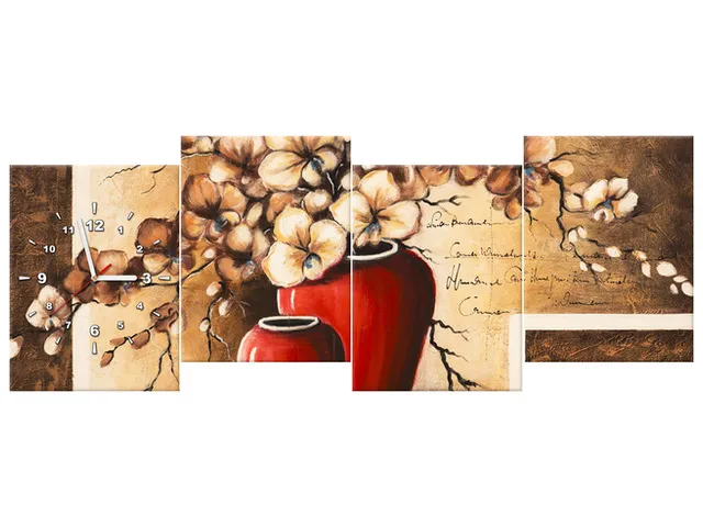 Úvod » Obrazy » Obrazy s hodinami » Obraz s hodinami Orchidey v červenej váze