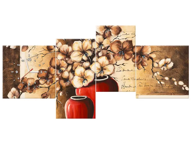 Úvod » Obrazy » Obrazy s hodinami » Obraz s hodinami Orchidey v červenej váze