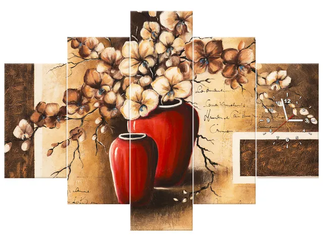Úvod » Obrazy » Obrazy s hodinami » Obraz s hodinami Orchidey v červenej váze