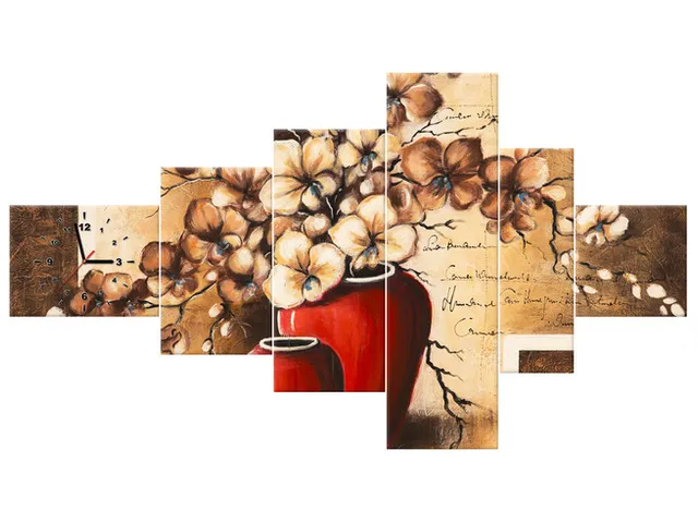 Úvod » Obrazy » Obrazy s hodinami » Obraz s hodinami Orchidey v červenej váze