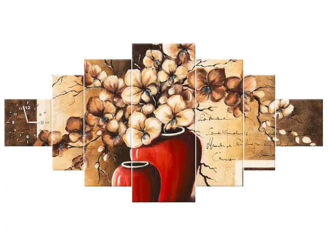 Úvod » Obrazy » Obrazy s hodinami » Obraz s hodinami Orchidey v červenej váze