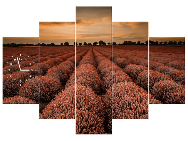 Úvod » Obrazy » Obrazy s hodinami » Obraz s hodinami Oslňujúce levandule v oranžovej farbe