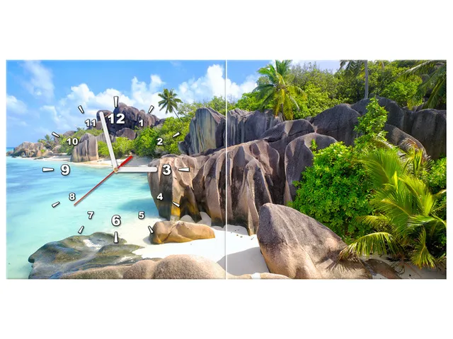 Úvod » Obrazy » Obrazy s hodinami » Obraz s hodinami Ostrov La Digue