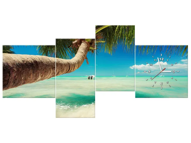 Úvod » Obrazy » Obrazy s hodinami » Obraz s hodinami Pekná palma nad Karibikom