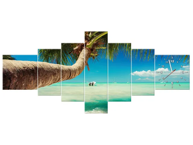 Úvod » Obrazy » Obrazy s hodinami » Obraz s hodinami Pekná palma nad Karibikom
