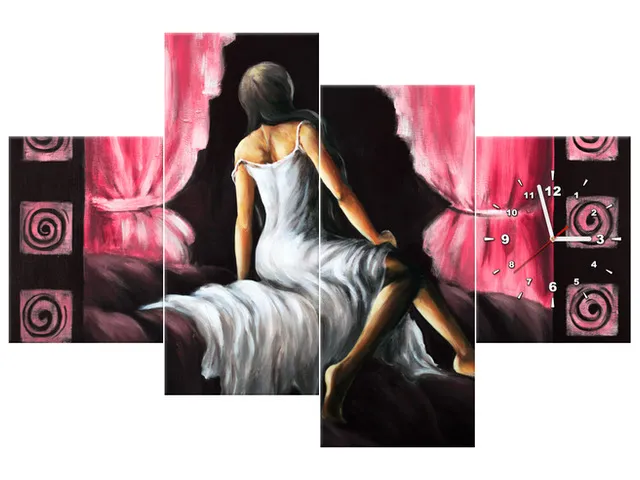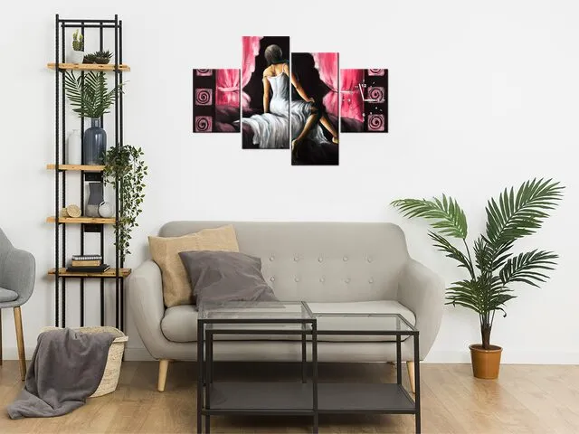 Úvod » Obrazy » Obrazy s hodinami » Obraz s hodinami Pekné dievča v červenej farbe
