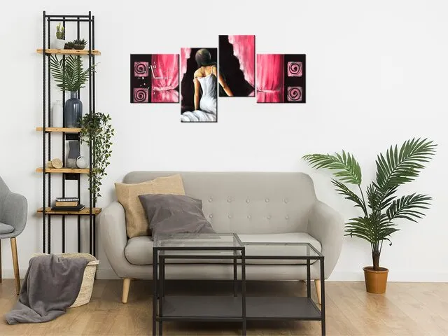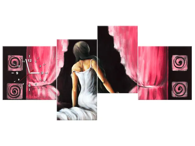 Úvod » Obrazy » Obrazy s hodinami » Obraz s hodinami Pekné dievča v červenej farbe