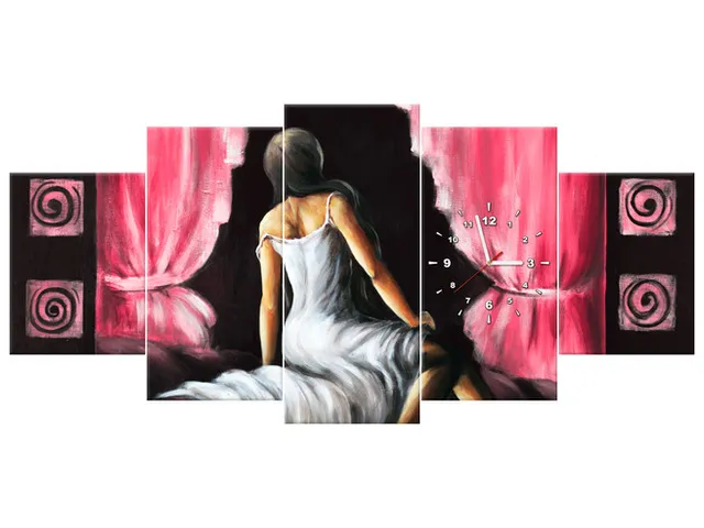Úvod » Obrazy » Obrazy s hodinami » Obraz s hodinami Pekné dievča v červenej farbe