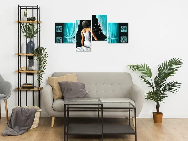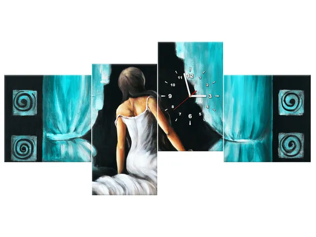 Úvod » Obrazy » Obrazy s hodinami » Obraz s hodinami Pekné dievča v tyrkysovej farbe