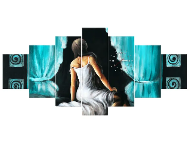 Obraz s hodinami Pekné dievča v tyrkysovej farbe