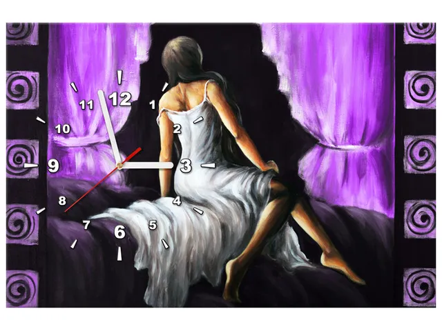 Úvod » Obrazy » Obrazy s hodinami » Obraz s hodinami Pekné dievča vo fialovej farbe