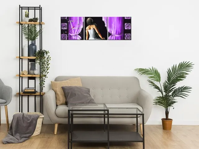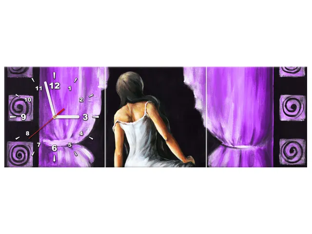 Úvod » Obrazy » Obrazy s hodinami » Obraz s hodinami Pekné dievča vo fialovej farbe