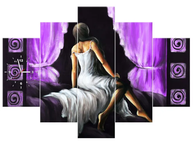 Úvod » Obrazy » Obrazy s hodinami » Obraz s hodinami Pekné dievča vo fialovej farbe