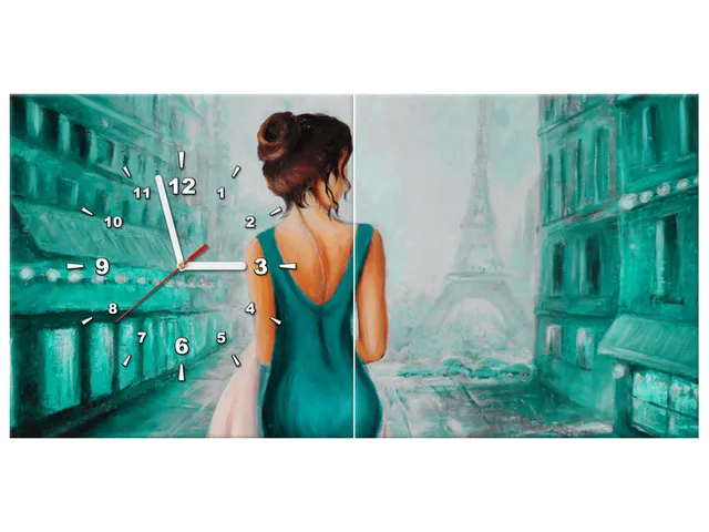 Úvod » Obrazy » Obrazy s hodinami » Obraz s hodinami Prechádzka po Paríži v zelenej