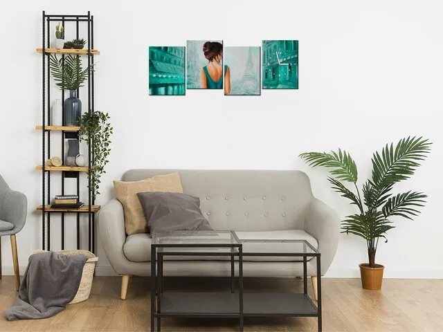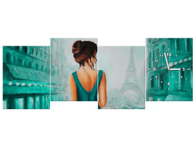 Úvod » Obrazy » Obrazy s hodinami » Obraz s hodinami Prechádzka po Paríži v zelenej