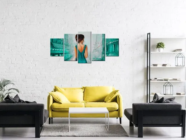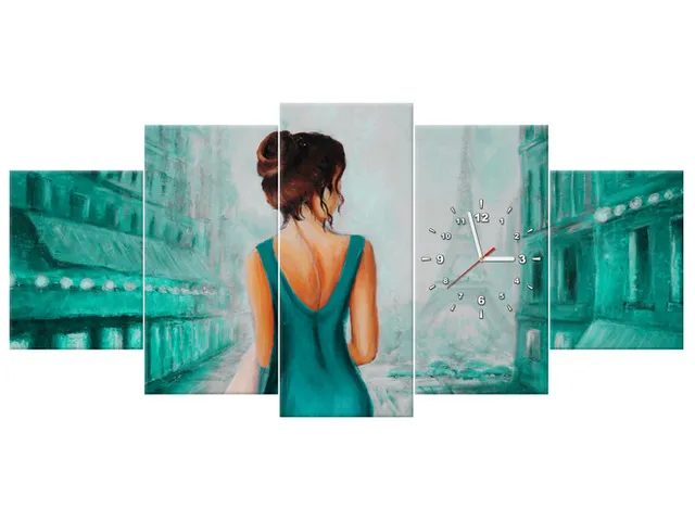 Úvod » Obrazy » Obrazy s hodinami » Obraz s hodinami Prechádzka po Paríži v zelenej