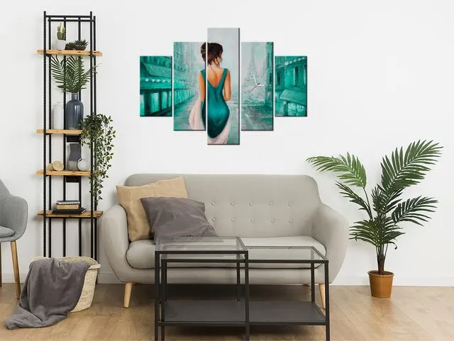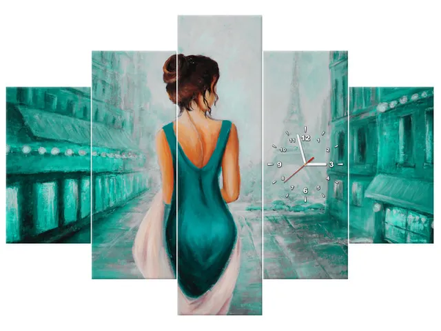 Úvod » Obrazy » Obrazy s hodinami » Obraz s hodinami Prechádzka po Paríži v zelenej