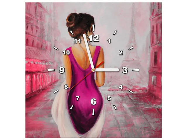 Úvod » Obrazy » Obrazy s hodinami » Obraz s hodinami Prechádzka v Paríži v ružovej farbe