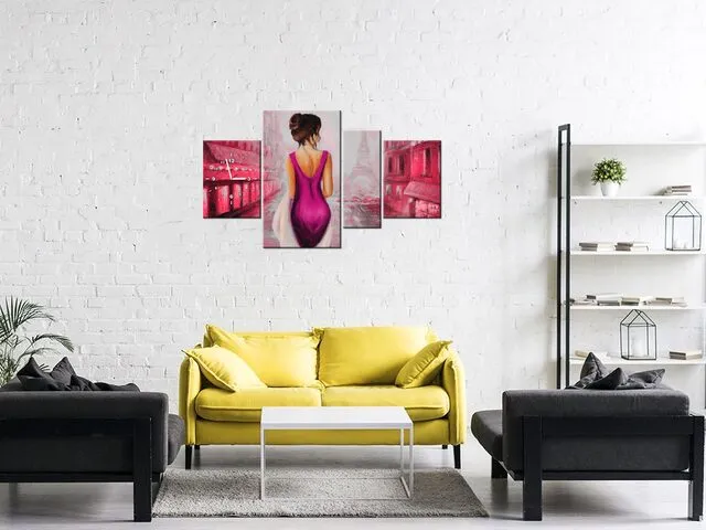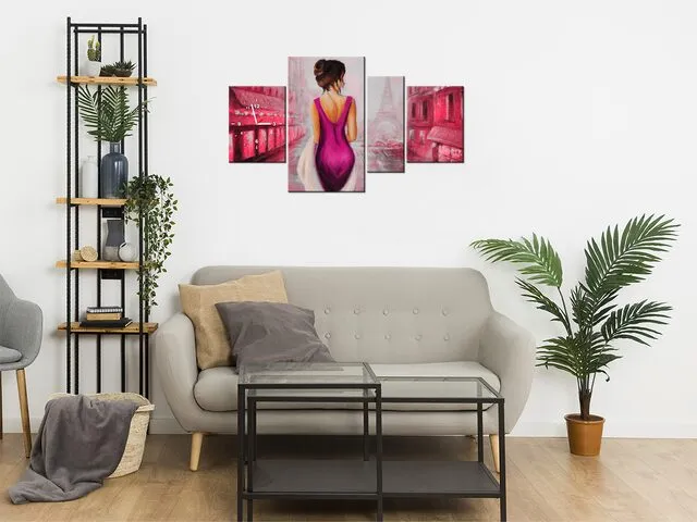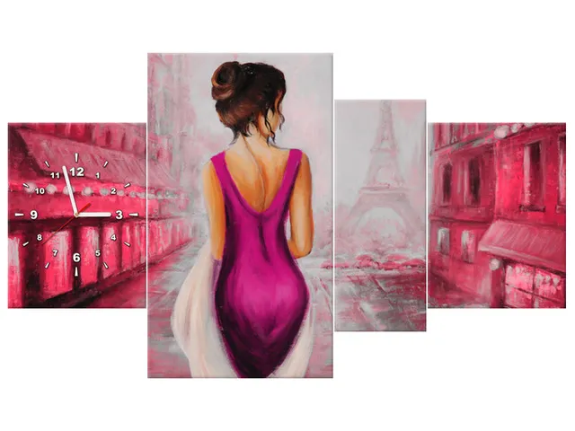 Úvod » Obrazy » Obrazy s hodinami » Obraz s hodinami Prechádzka v Paríži v ružovej farbe