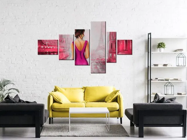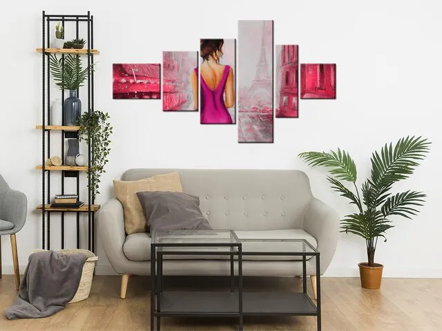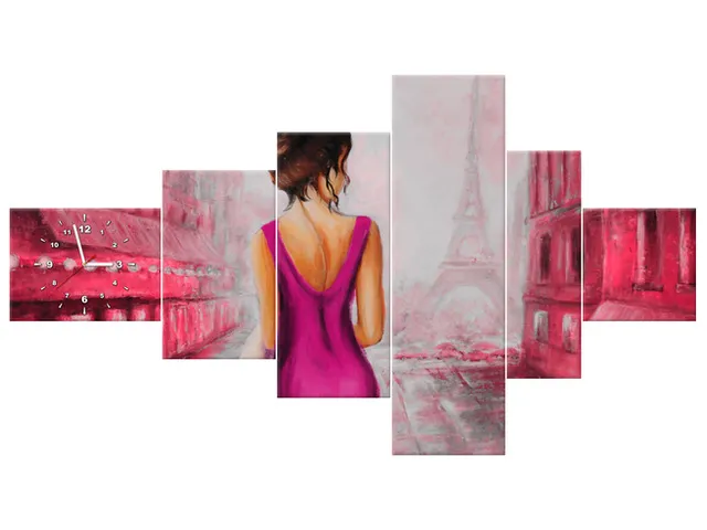 Úvod » Obrazy » Obrazy s hodinami » Obraz s hodinami Prechádzka v Paríži v ružovej farbe
