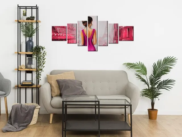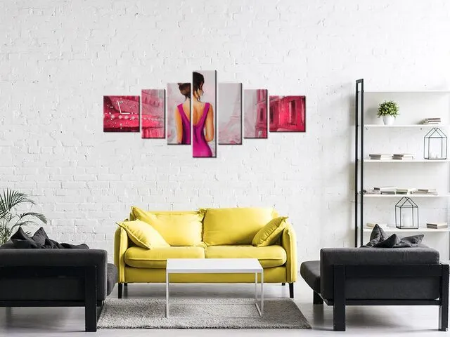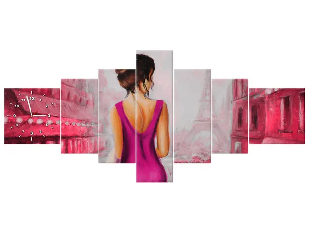 Úvod » Obrazy » Obrazy s hodinami » Obraz s hodinami Prechádzka v Paríži v ružovej farbe