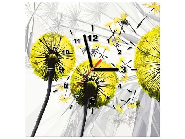 Úvod » Obrazy » Obrazy s hodinami » Obraz s hodinami Púpava v žltej farbe