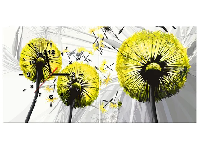 Úvod » Obrazy » Obrazy s hodinami » Obraz s hodinami Púpava v žltej farbe