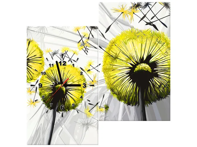 Úvod » Obrazy » Obrazy s hodinami » Obraz s hodinami Púpava v žltej farbe
