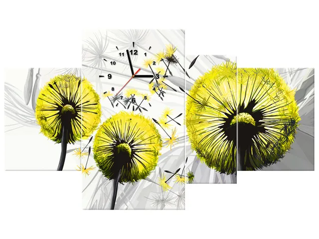 Úvod » Obrazy » Obrazy s hodinami » Obraz s hodinami Púpava v žltej farbe