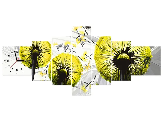 Úvod » Obrazy » Obrazy s hodinami » Obraz s hodinami Púpava v žltej farbe