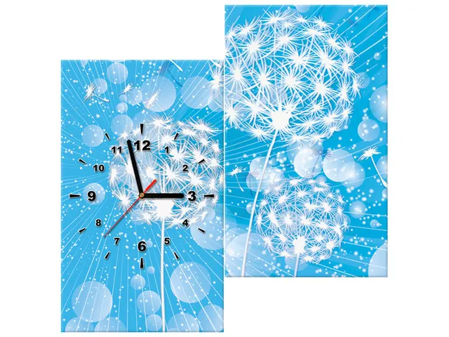 Úvod » Obrazy » Obrazy s hodinami » Obraz s hodinami Púpavy na abstraktnom modrom pozadí