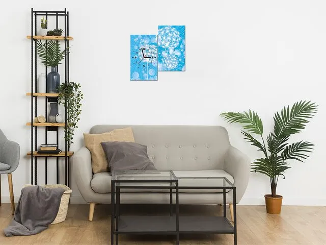 Obraz s hodinami Púpavy na abstraktnom modrom pozadí