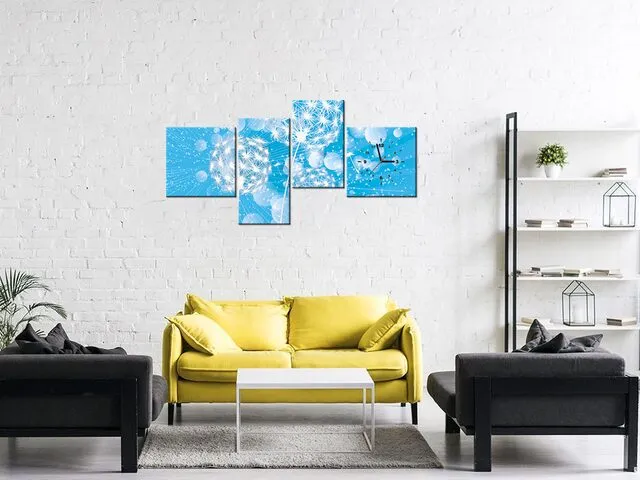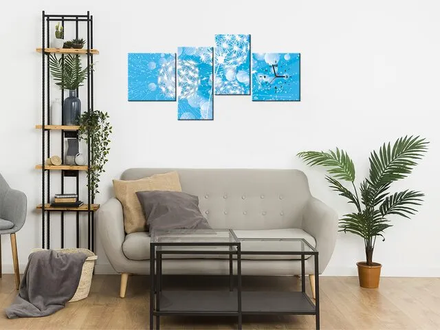 Úvod » Obrazy » Obrazy s hodinami » Obraz s hodinami Púpavy na abstraktnom modrom pozadí